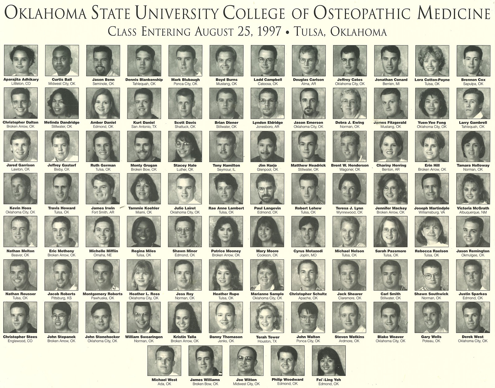 Below you will find an archive of class composites taken of students in the College of Osteopathic Medicine over the years. These were usually assembled before each class started, after they graduated, or both. Composites are organized by the graduation year of each class.